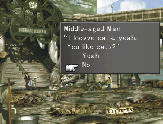• He could be calling Squall a heartless son of a bitch. He could be congratulating Squall on his appreciation of cats. He could be existing independently of Squall, having no need to concern himself with JRPG protagonists because he has ever so many cats around.